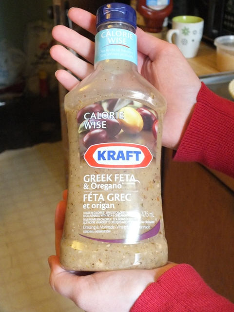 1/2 cup Kraft Calorie Wise Greek Feta and Oregano Salad Dressing – (more to taste if you like)