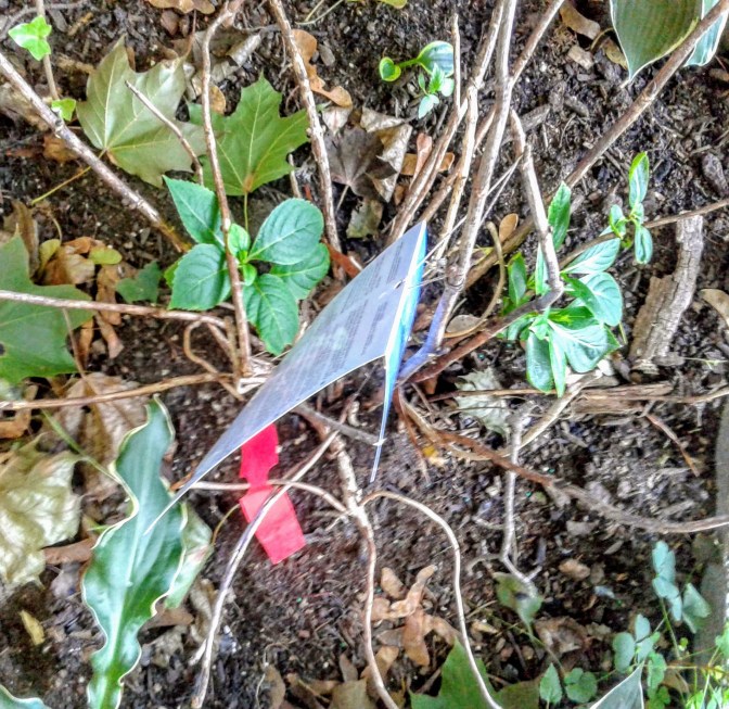 I am planting a row of on-sale shrubs along this fenceline – in full shade from a Norway Maple. This area was at one time a rotten wooden deck between our basement door and a “cliff” of about 8 feet in depth with a hedge of what may be privet on the other side of the fence. As the “cliff” of the retaining wall is looking not too stable to me – I don’t believe replacing the fence with a privacy fence here is an option. The post holes may cause the retaining wall to crumble. So I hope to plant shrubs which will root and hold the soil, but survive the shade. I have also planted Daphne and Lilacs, further down the row.
