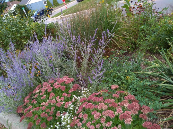 The garden above looks to me like more of that lovely Russian Sage, with some Autumn Joy Sedum, Purple Coneflower and lots of other things that look wild, but just aren’t!