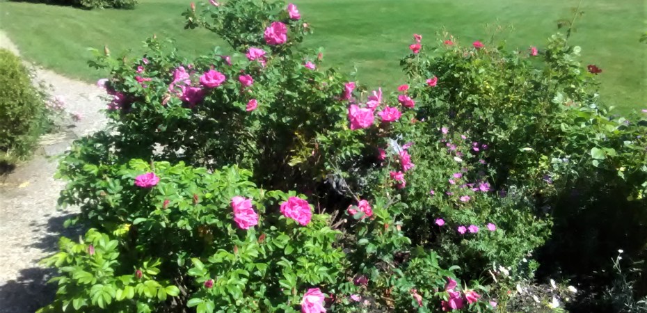 In my previous country garden, I had no space limitations, but dealt with drying cold winds, and considered my yard a Zone 4. To satisfy my love of pink, I planted Explorer Roses. Agriculture Canada had in the 1960s begun a breeding program that produced a variety of roses suitable for Northern Gardens.