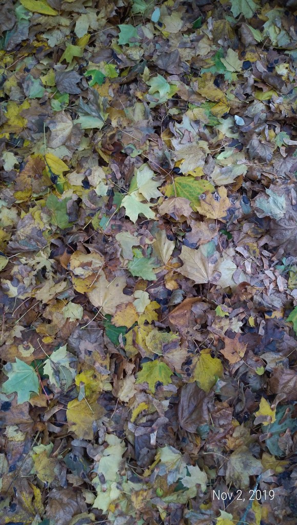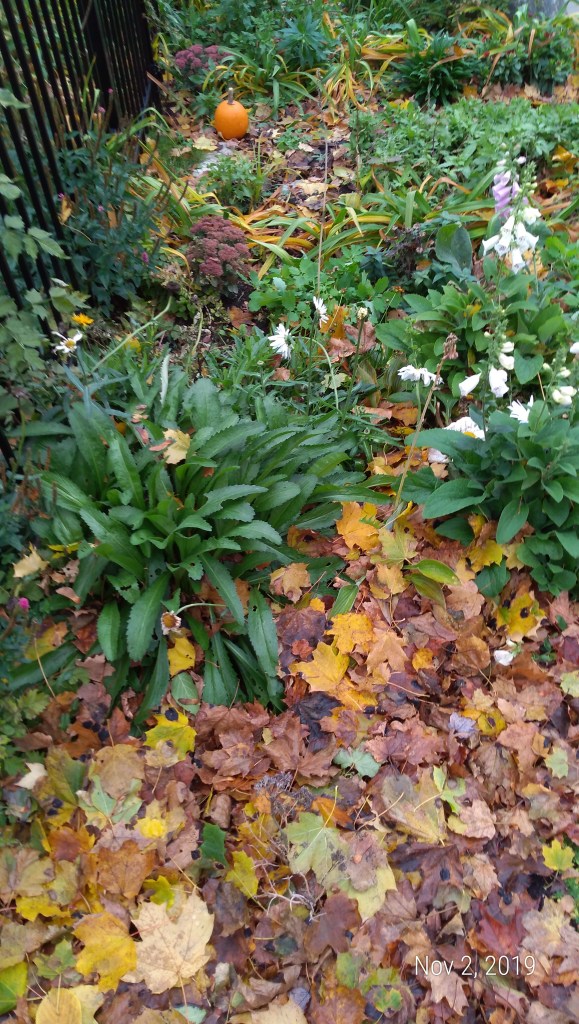 Sometimes bad weather is a blessing. We had lots of rain the other day, followed by high winds. This caused almost all of our Norway Maples leaves to fall to the ground in one short period of time.
