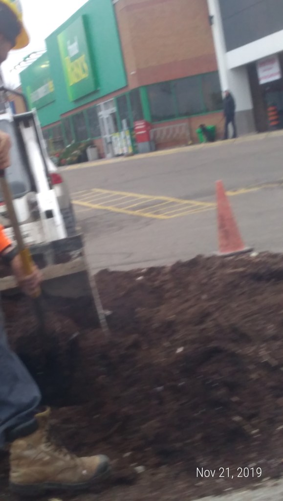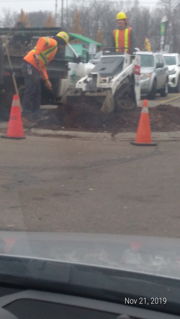 The plaza where the driving test facility is located is under construction. The building looks completely different than it has in the previous 2 test visits. The parking lot and garden are now being completed in cold November. I most enjoyed as we circled around the parking lot what seemed like 100 times, watching 2 workers dig up a small triangle of garden or about 4 by 4 by 8 feet in length over a course of 2 days.