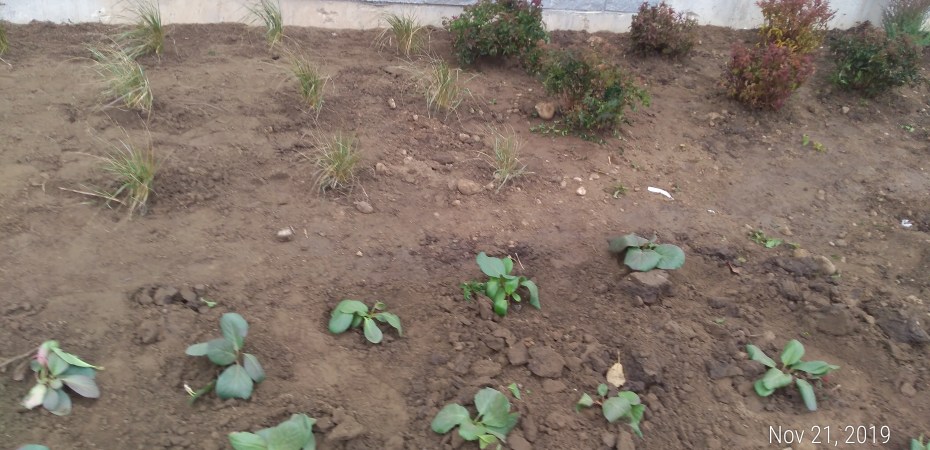 The Bergenia Cordifailia had small but broad leaves, something like my Bugleweed, and I was interested that a soft leaved plant was being placed in the ground this late in November – after the frost and snow had started.