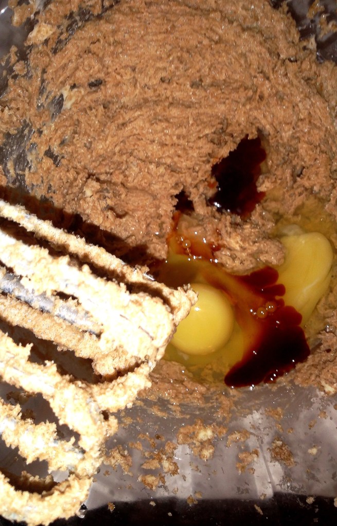 This is a classic leavened cookie. Cream softened butter and brown sugar with a beater until fluffy.