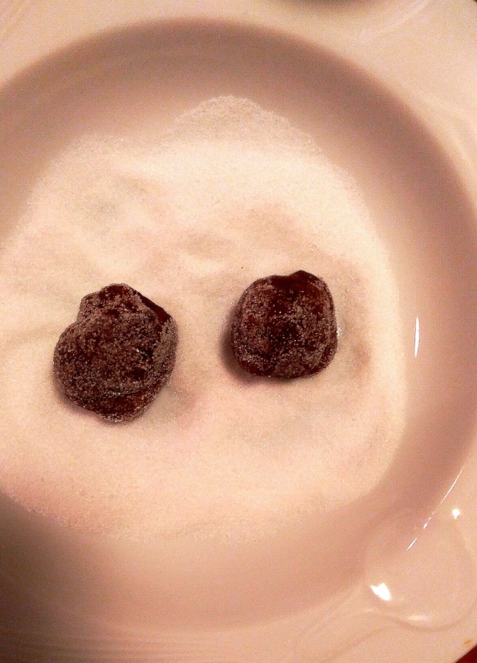 - Drop into granulated sugar – roll dough in sugar