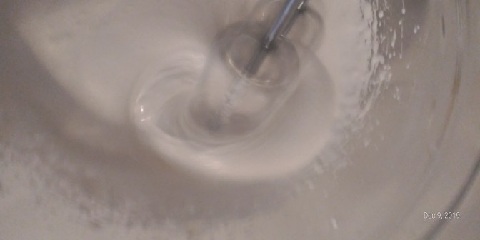 In a tall sided mixing bowl, beat egg whites on high for about 3 minutes.