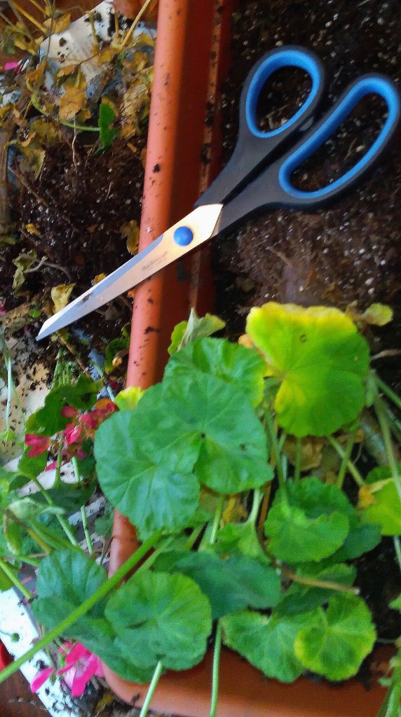 In the depths of my basement my pelargoniums had survived the lack of water, but had grown lots of lovely green new shoots, striving upwards toward the little bit of sunlight in my workshop.