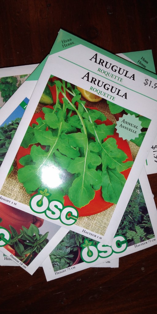 Along with my already planted herbs and houseplants, I will try to grow a salad mix – cool weather tolerant greens – spinach, arugala, leaf lettuces and chard. Wish me luck!