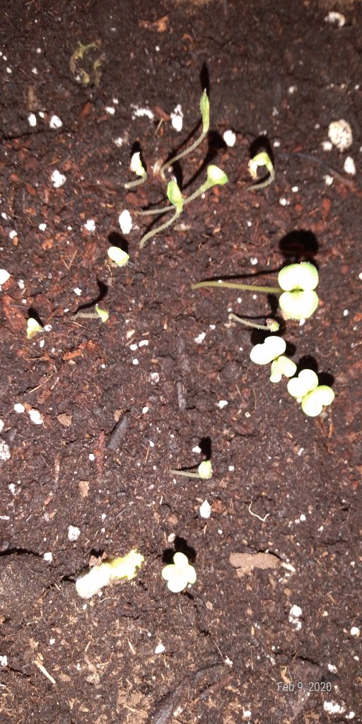 There is a mix of seeds called a “Butterfly Mixture” from OSC – which is made up of Alyssum, Daisy, Bachelor Buttons, Butterfly Weed, Candytuft, Columbine, Coneflowers, Coreopsis, Cosmos, Scarlet Flax, Marigolds, Poppy and Wallflower. Honestly, these seed mixtures will produce flowers, but it’s better to choose individual seeds. What has sprouted so far, looks like Cosmos, but I should have just put those in the ground outside. I love Cosmos, but I am happy to keep them in a large mass of plants outside. I don’t need to start them inside. I was just excited to see the pictures of Coneflowers, Bachelor Buttons and Daisies on the cover of the packet.