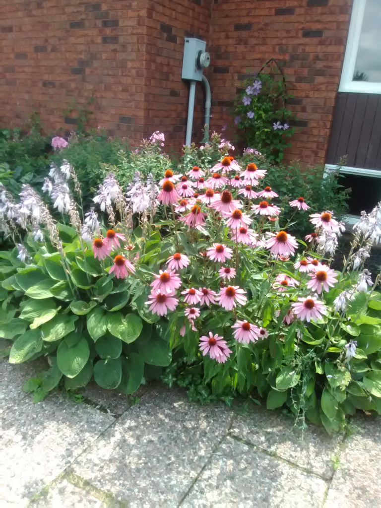 Purple Coneflowers, commonly seen in Canadian country gardens, are properly called Echinacea Purpurea. Echinacea are members of the Asteraceae/Compositae family – and therefore are related to asters, daisies, composites and sunflowers. I often confuse Coneflowers with Rudbeckia in my garden before they have bloomed. They have similar foliage and height in my garden, and the similarity is because Echinacea and Rucbeckia are 2 of the 4 genera of the Aster family. Although it seems like there are numerous species of Echinacea – a DNA study of 40 varieties – showed that there are actually just 10 species of Echinacea – Narrow-leaf, Topeka purple, Smooth or smooth purple, Pale purple, Yellow/Bush’s purple, Purple or eastern purple, Sanguine purple, Narrow-leaved purple, Wavyleaf purple and Tennessee – all coneflowers.