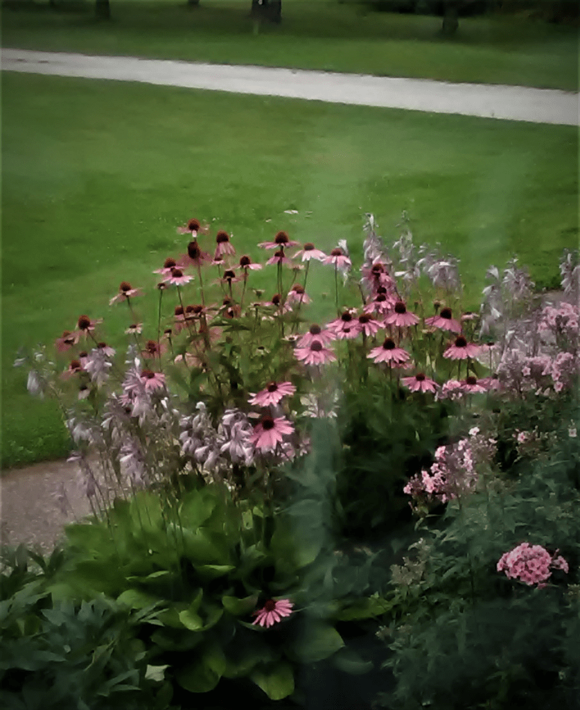 I do mulch all of my gardens with a healthy layer of compost, and I do apply a slow release organic fertilizer through the summer. I tend not to be a waterer of the garden – and the drought resistant Coneflower survives my neglect, but now that my husband is retired – he enjoys watering my flowers regularly!