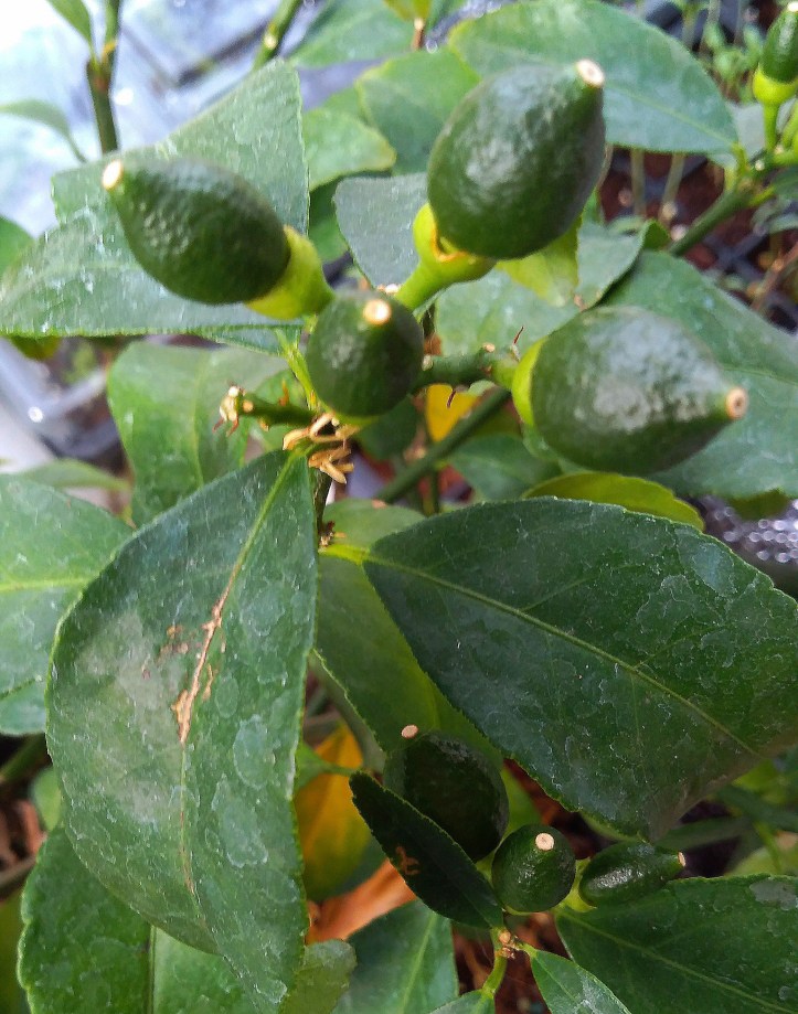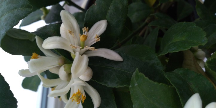 I had posted previously about the Dwarf Lemon Tree that I have been growing in my dim and drafty windowsill here in southern Ontario. I had bought the plant on a lark, thinking it would be fun to try, but I didn’t exactly expect to be successful.