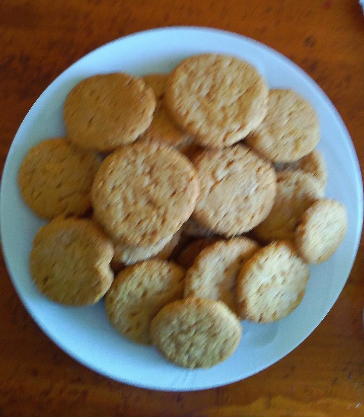 These Peanut Butter Cookies are delicious. I used a modified version of my vegan cookie recipes that I used for the Vegan Cocoa, Shortbread and Butter Pecan cookies. The peanut butter flavour is dry and salty so I used just Granulated Sugar and more Vanilla – to “cut” the dry flavour, and I used more flour to form the dough. If you are out of baking powder and baking soda, you can experiment with going without – the cookies will just be a little flatter and less cakey!