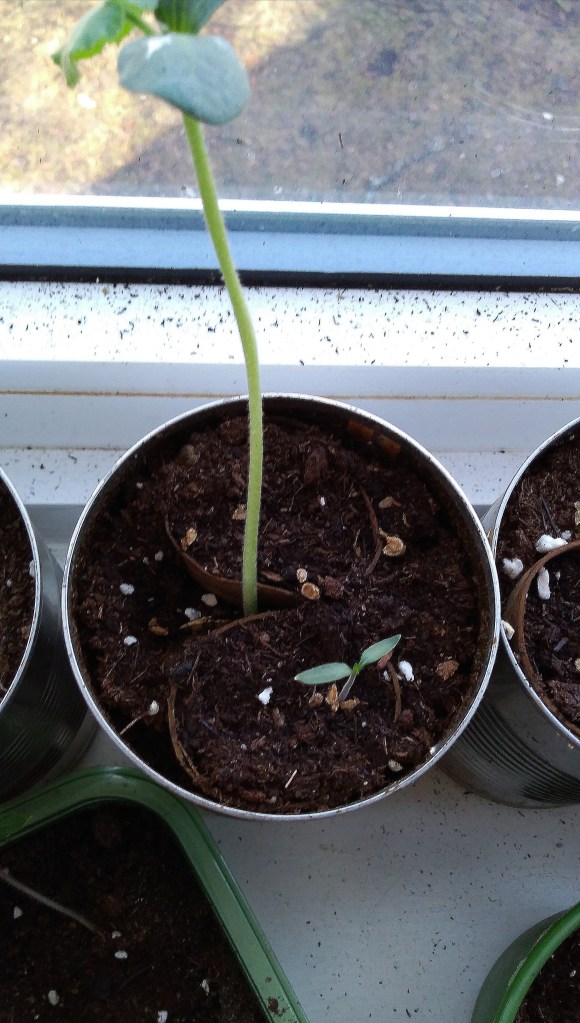 I have been starting seeds indoors over the winter in anticipation of mid-May planting outdoors – our approximate frost free time frame in Southern Ontario. I can’t wait to get started. So far I have planted far too many tomatoes (but that’s OK), and I have struggled with my hot peppers. I have occasionally taken the clear plastic covering off of my cell planters too early and dried out my little seedlings. It happens so quickly. There should still be plenty though. The pumpkin and squash are doing well – with their large leaves and stems they have more obvious personalities. I know when they are happy or sad and haven’t neglected them yet.