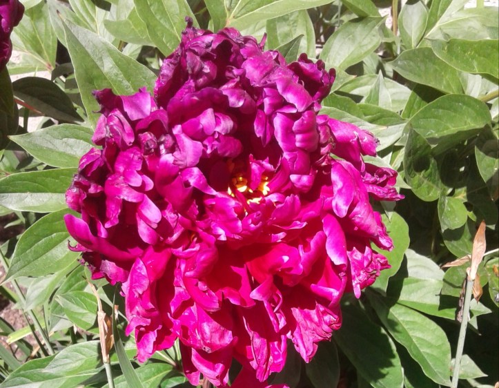 I once read that the peony is like the floozy of the garden. Is this politically incorrect to say? – I’m not sure, but the peony with it’s enormous multi-layered flowers, always seems a little overdressed, happy, sometimes the perfume is overwhelming, and too soon the petals fall and make a mess. The peony is without a doubt my favorite flower. Overdressed, and sloppy she may be, but the sudden bloom that happens across my garden makes me happy.