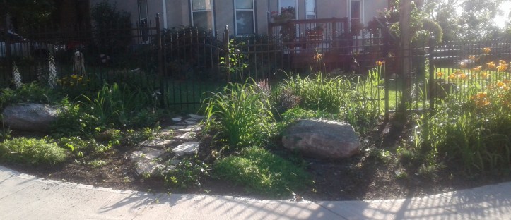 What I’ve learned to appreciate about hostas, is that I can plant them in the sun (within reason), and that they are generally hardy in my yard. I tend to plant them among other plants, where they provide a different leaf shape, sometimes a different leaf colour, and they nicely fill in the gaps – helping to crowd out other aggressive plants, and when densely planted with my other perennials – preserve the moisture in the soil during dry times.