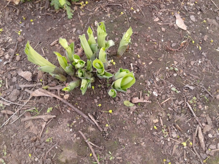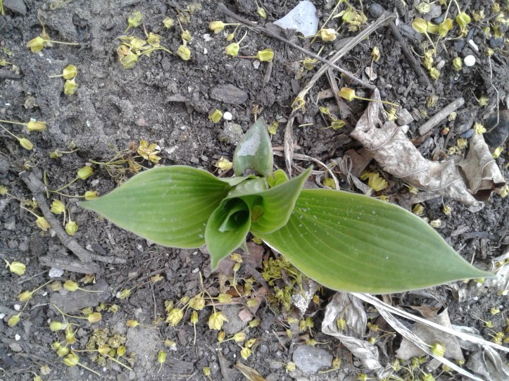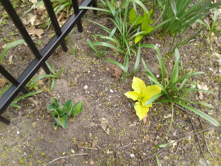 Last year’s hostas aren’t looking beautiful yet, but they will spread out in the next few weeks and define certain areas of my garden.