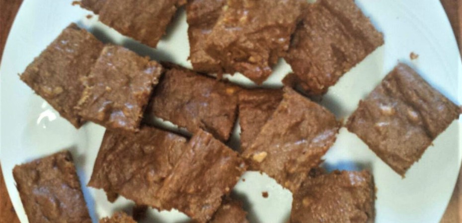 I thought I would try some pumpkin and peanut butter bars – these are baked – and contain NO FLOUR! The squares are solid because they contain egg – so they are not vegan – but perhaps I will experiment with this recipe in the future.